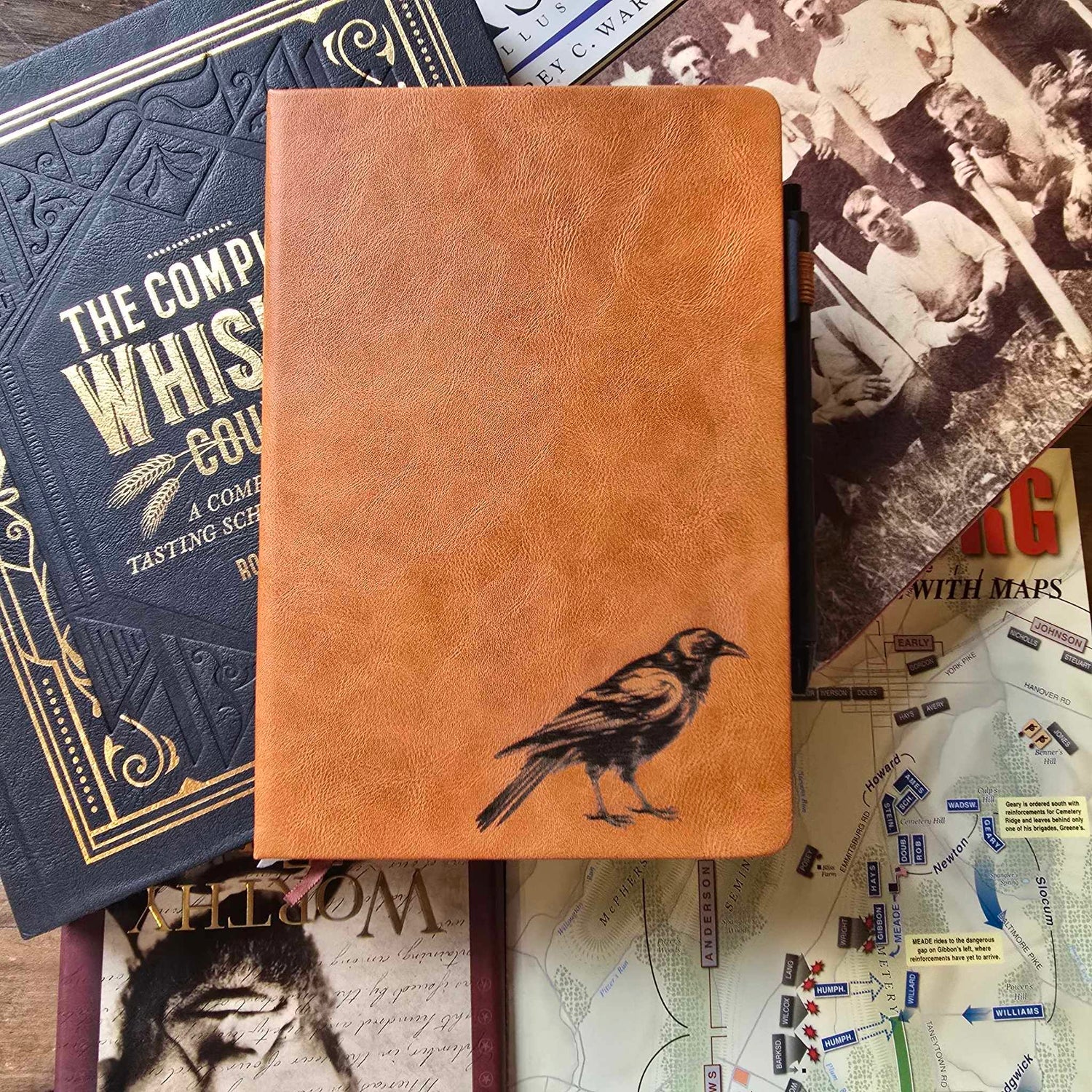 Engraved leather bound journal with pen
