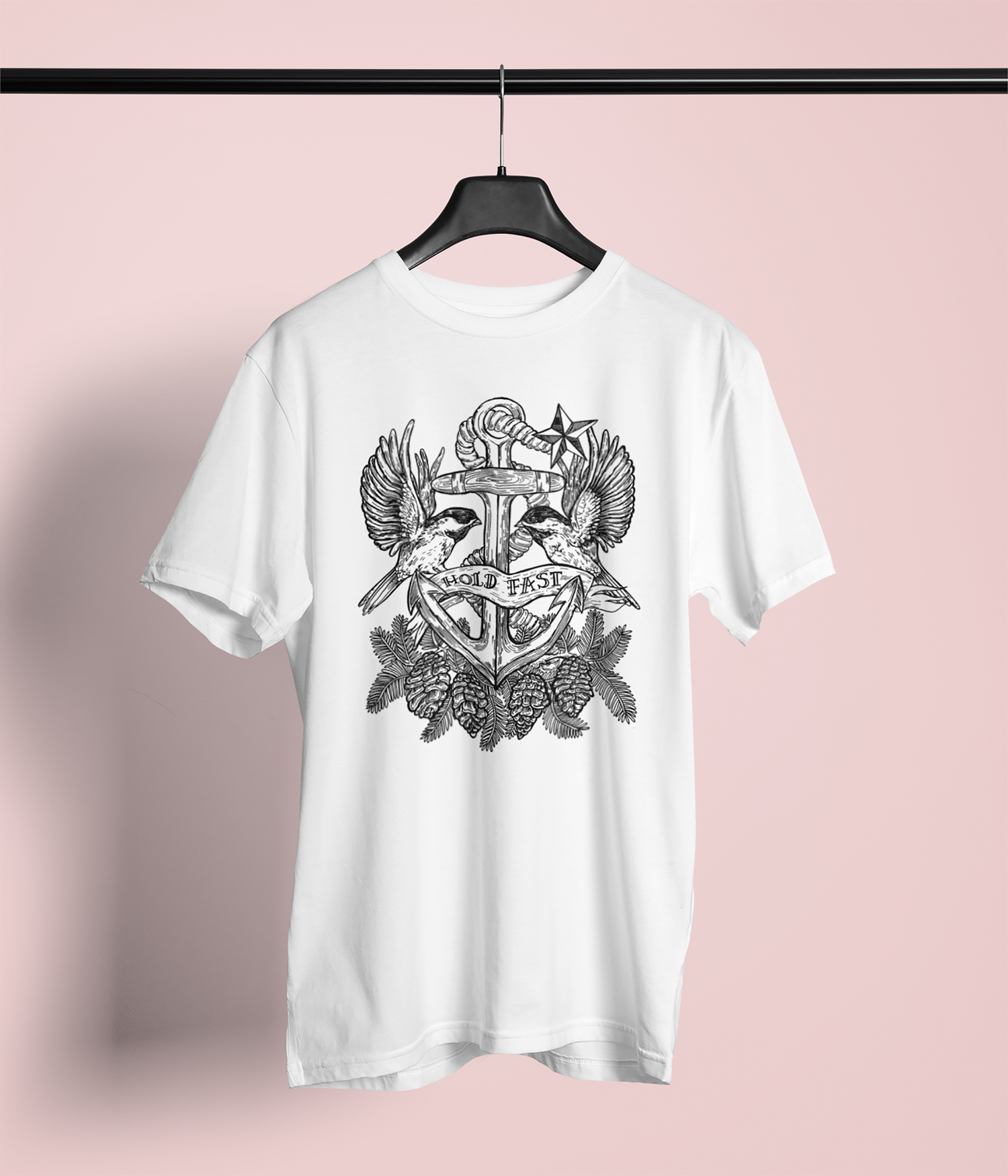 Modeled after classic tattoo artwork and featuring iconic Maine imagery, this awesome design is drawn exclusively for Loyal Citizen by local artist Shayna Blumert.